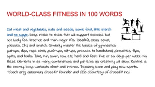 Posted December 28 2016 by CrossFit9. Eat meat and vegetables nuts and seeds some fruit little starch and no sugar. World-Class Fitness in 100 Words To start off 2016 right we are going to break down Coach Greg Glassmans CEO and Founder of CrossFit World-Class Fitness in 100.